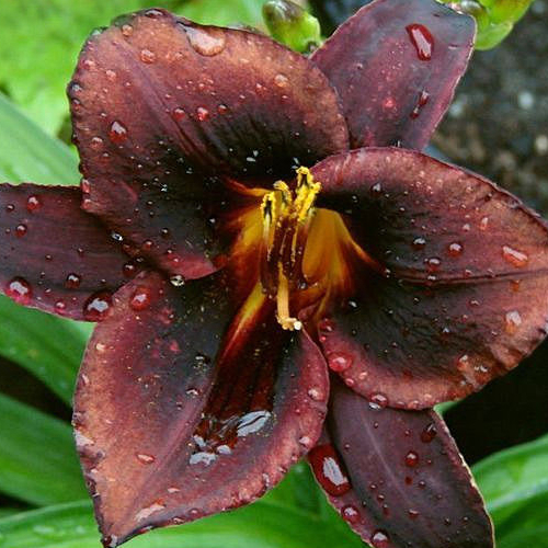 Лилейник Sweet Hot Chocolate (Свит Хот Чоколат) - это изысканный сорт, который привлекает внимание своими насыщенными темно-бордовыми, почти черными цветками. Этот сорт станет настоящим украшением вашего сада благодаря своей уникальной окраске и крупным цветкам диаметром до 15 см.