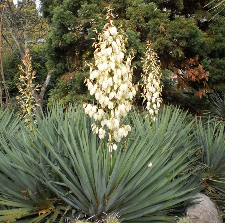 Юкка Сизая прекрасно подходит для создания акцентов в ландшафтном дизайне, оформления рокариев и альпийских горок. Она также может использоваться в качестве солитера или в групповых посадках с другими декоративными растениями. Добавьте экзотическую нотку в ваш сад с помощью этого удивительного растения!